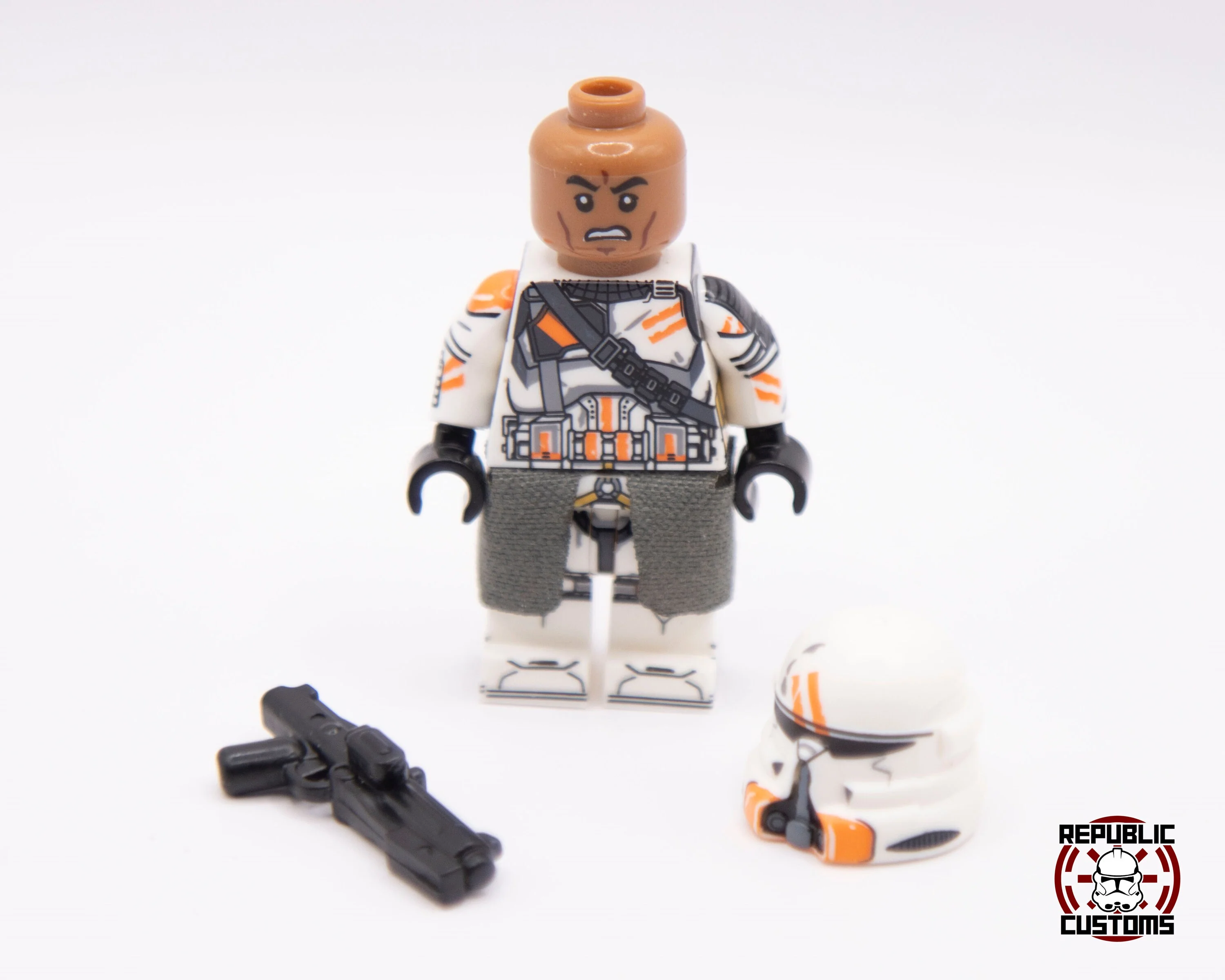 Airborne clone trooper from Obi-Wan's 212th Clone Regiment. Made with high-quality 360 pad printing to be as screen-accurate as possible. Includes a custom molded DC-15S blaster and fabric kama waistcape.
