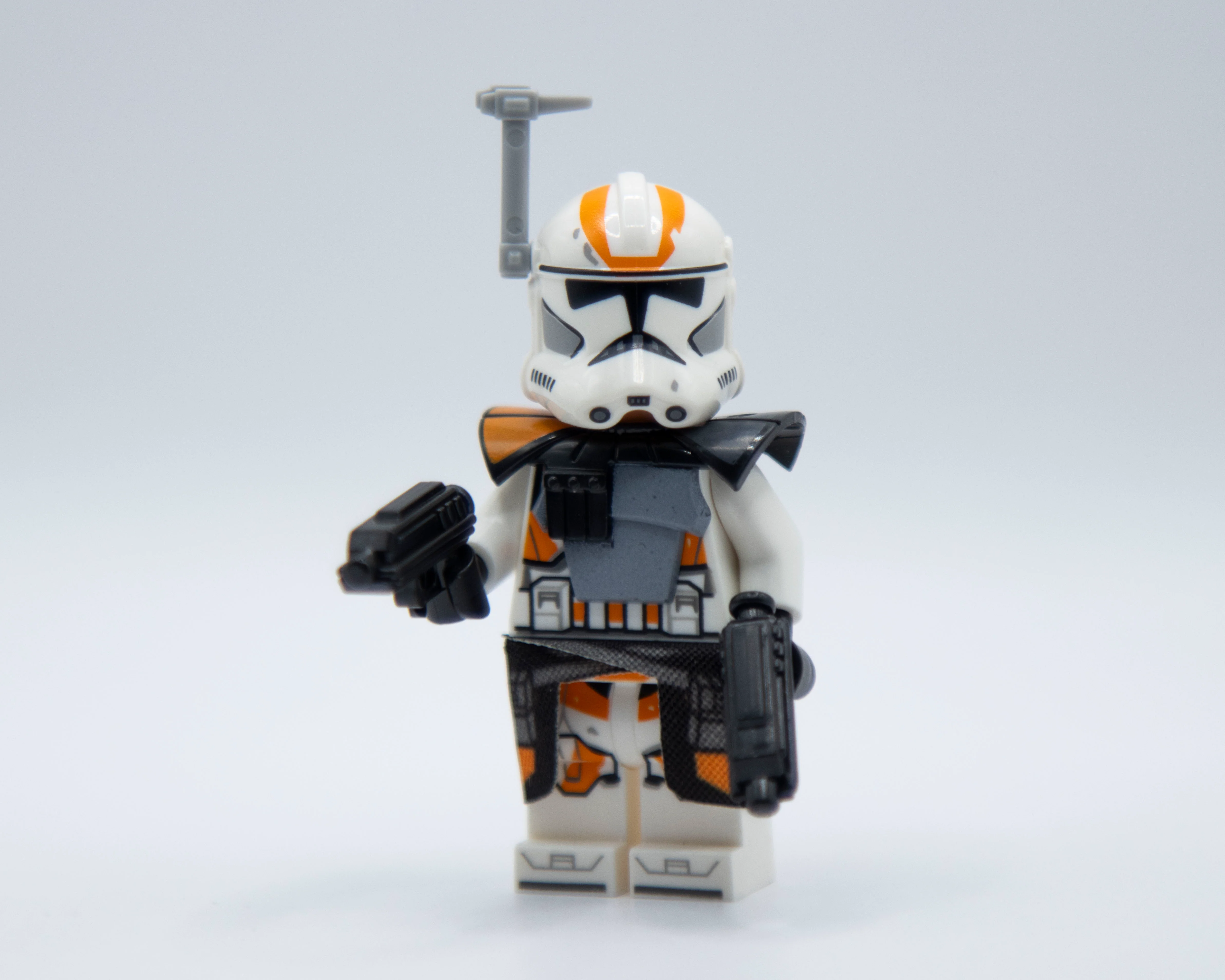 Orange ARC Trooper upgrade kit including fabric waistcape, plastic pauldron, antenna, and two custom molded DC-17 hand blasters. Perfect for 212th troopers.