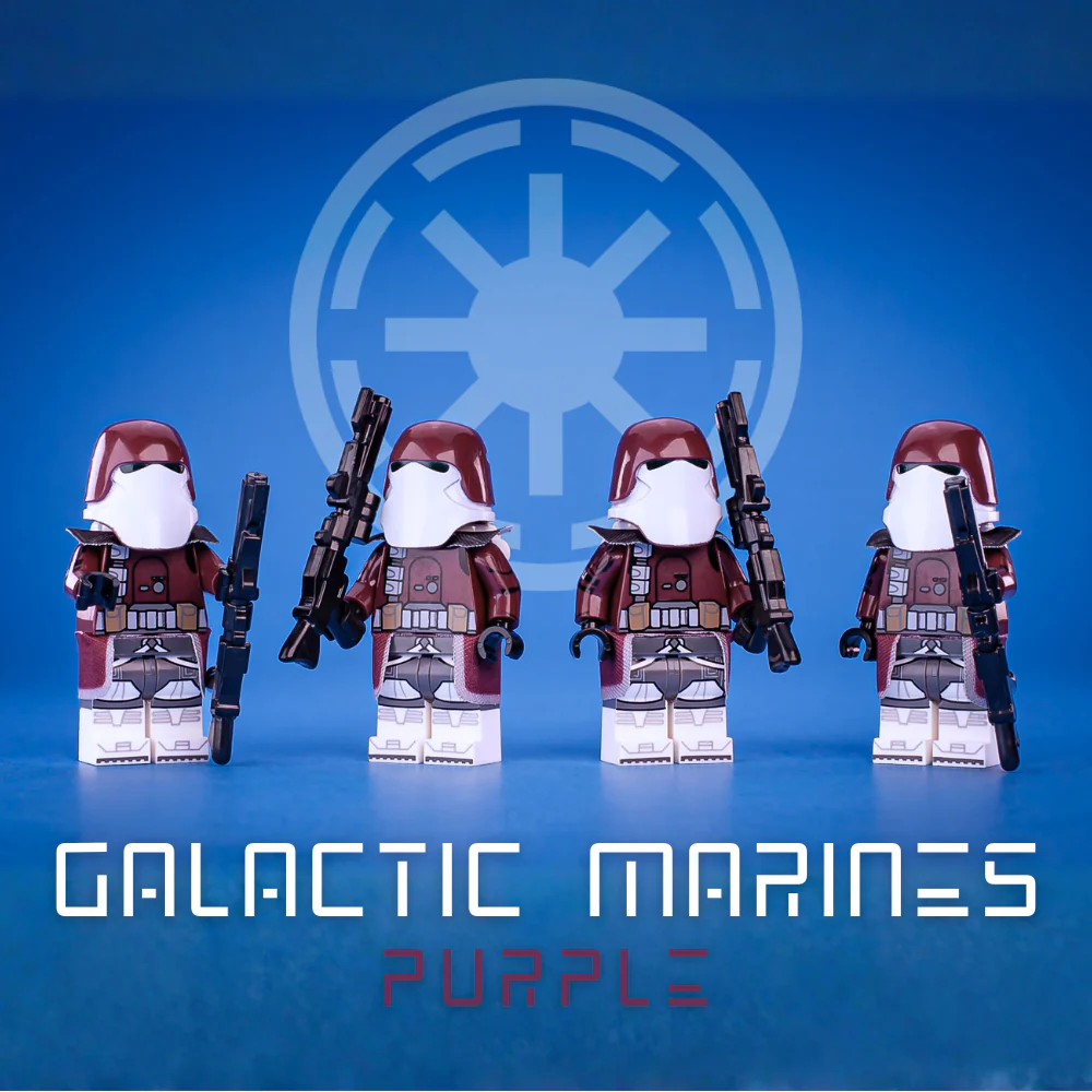 This marine is in our custom screen-accurate purple color. Galactic Marines are also available in dark red to match with official figures here.