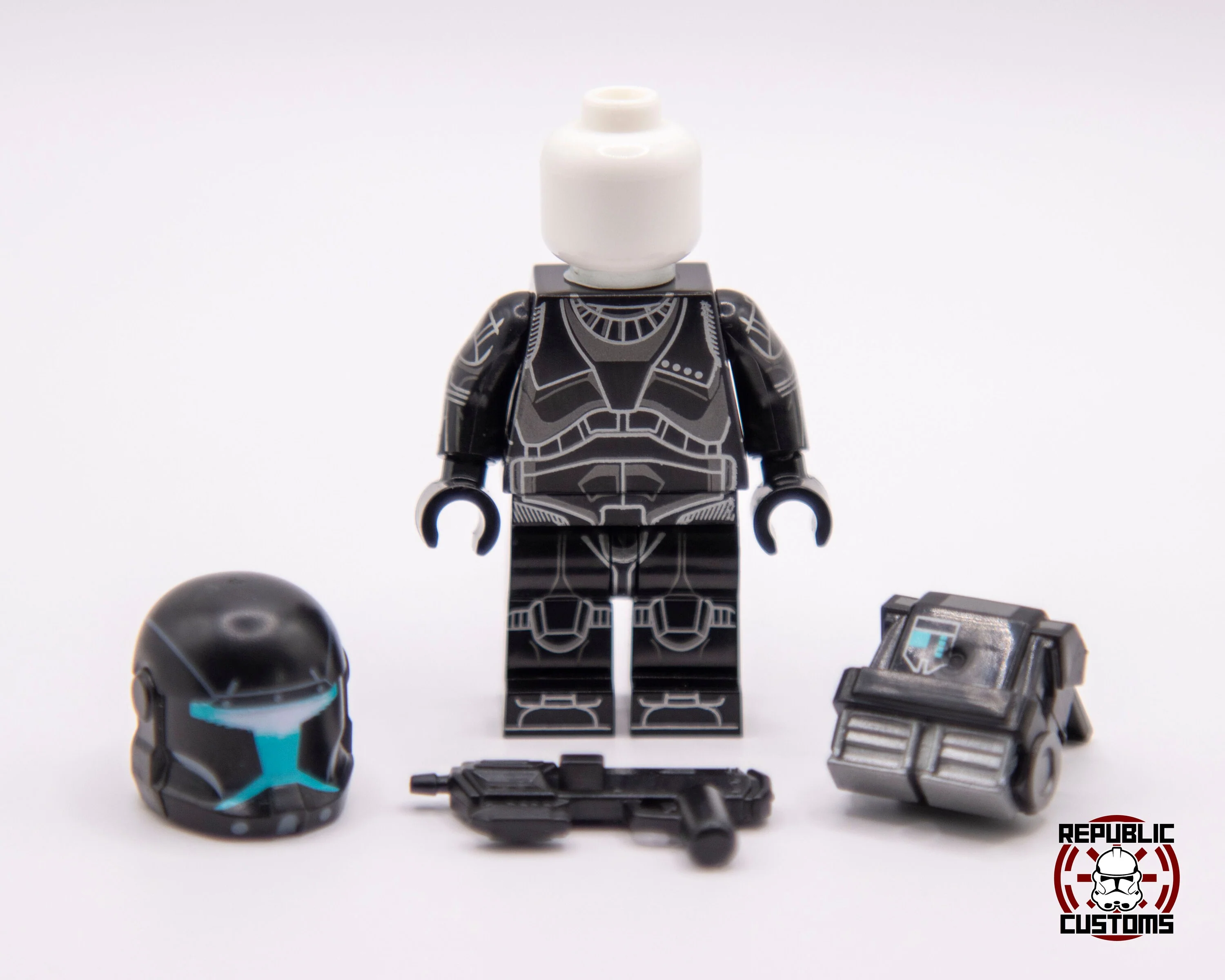 Omega Squad Shadow Clone Commando custom figure. Made with high-quality 360 pad printing to be as screen-accurate as possible. Comes with commando backpack and custom molded DC-17M blaster.