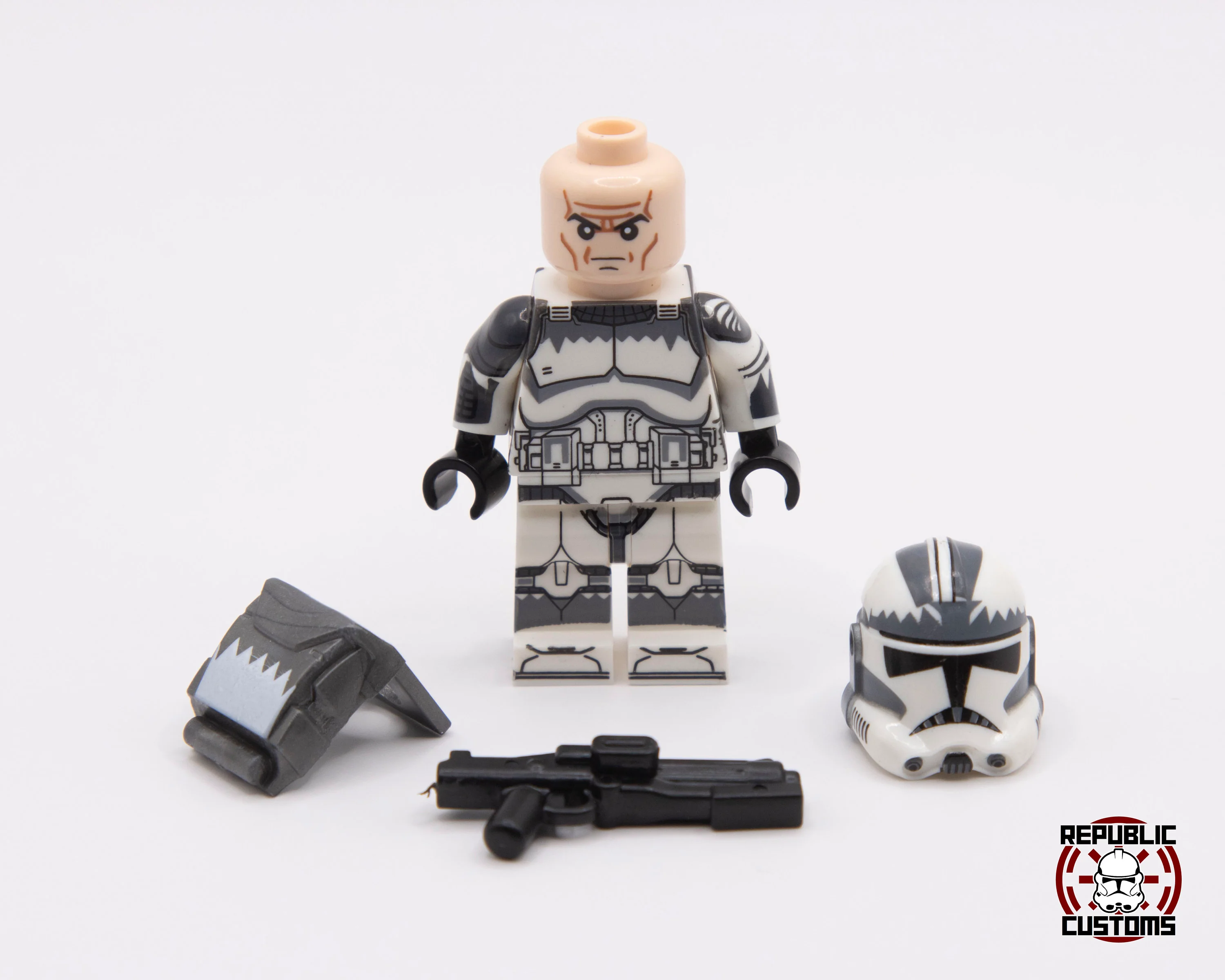 Standard clone trooper from Plo Koon's 104th Wolfpack. Made with high-quality 360 pad printing to be as screen-accurate as possible. Comes with a clone backpack and a custom molded DC-15S blaster.