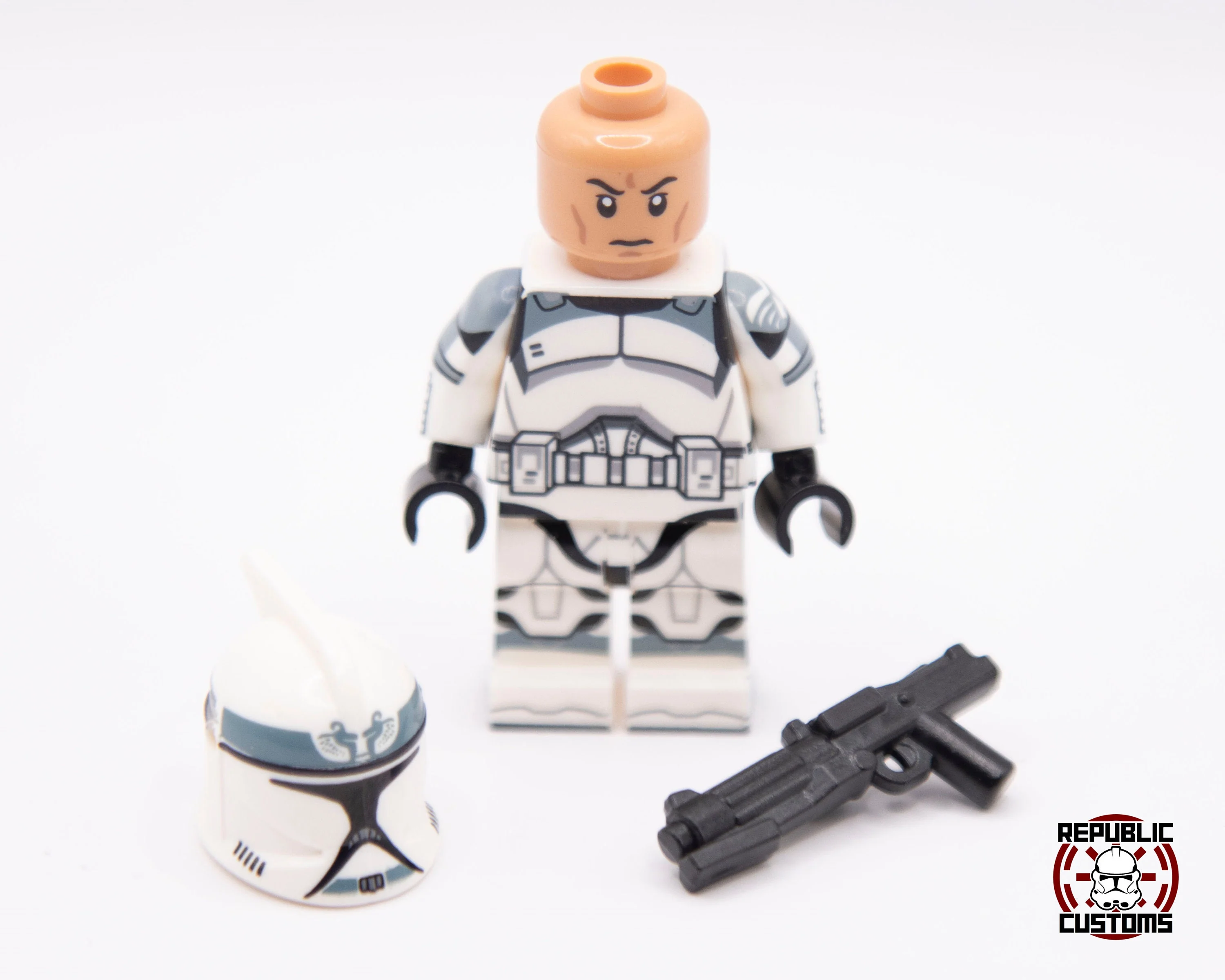 Phase 1 clone trooper from Plo Koon's 104th Wolfpack. Made with high-quality 360 pad printing to be as screen-accurate as possible. Comes with a custom molded DC-15S.